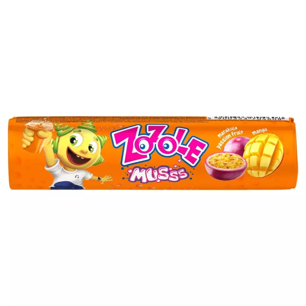 cukier, syrop glukozowy, regulatory kwasowości: kwas cytrynowy, węglany sodu, cytryniany sodu, aromaty, koncentraty soków owocowych w proszku (0,1 %): mango, marakuja, barwnik: ekstrakt z papryki